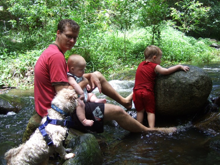 Jerry went everywhere with us. Once we had the kids though, Jerry did get a little neglected. There was the time we nearly left him behind after a BBQ at Cedar Creek and were lucky enough to have another picnicker come running after our car with him. As well as the time that we left him at the park after loading 3 kids, 3 scooters and 3 bikes in the car and we didn’t realise until 9pm that night. We were lucky that he attached himself to another family at the park with a pram who had noticed us and they realised what had happened and handed him in at the vet for us. And the time that we nearly left him behind in the car park at the botanical gardens, we’re not sounding like the best of family for him are we? It was no wonder that every chance he got he would try to jump into someone else’s car!
