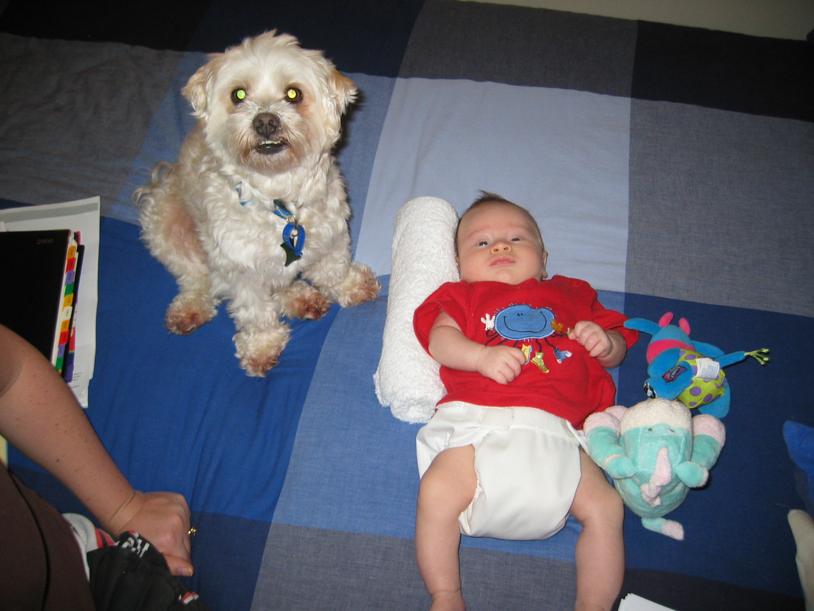 Jerry was our first baby, he was our practice run at what parenting would be like. Matt and I argued over whether he was allowed to sleep in the house or not, and after 2 nights of puppy Jerry howling outside our bedroom window, upset at being relegated to an old tv box kennel, we ‘compromised’, and Jerry spent the rest of his nights in his dog-bed at the foot of our bed! Matt learnt that while positive reinforcement when obedience training our ‘first child’ is good, if you over-reward with the doggy chocolate, then you will have dog who vomits chocolate bits for days and who then never responds to a doggy treat ever again!