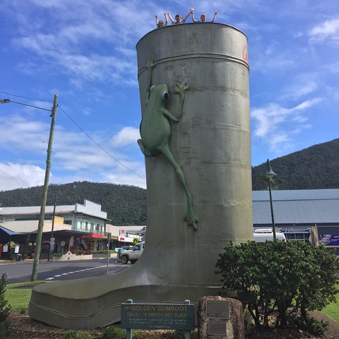 First stop was the Big Gumboot in Tully. While Matt and the kids climbed to the top of the Gumboot, I did a quick trip to the op shop up the Main Street to buy some cheap towels which I had realised I had forgotten to pack – ooopps! Obviously out of practice! Tully is well known for being Australia’s wettest town, but we managed to see it with blue skies between showers.