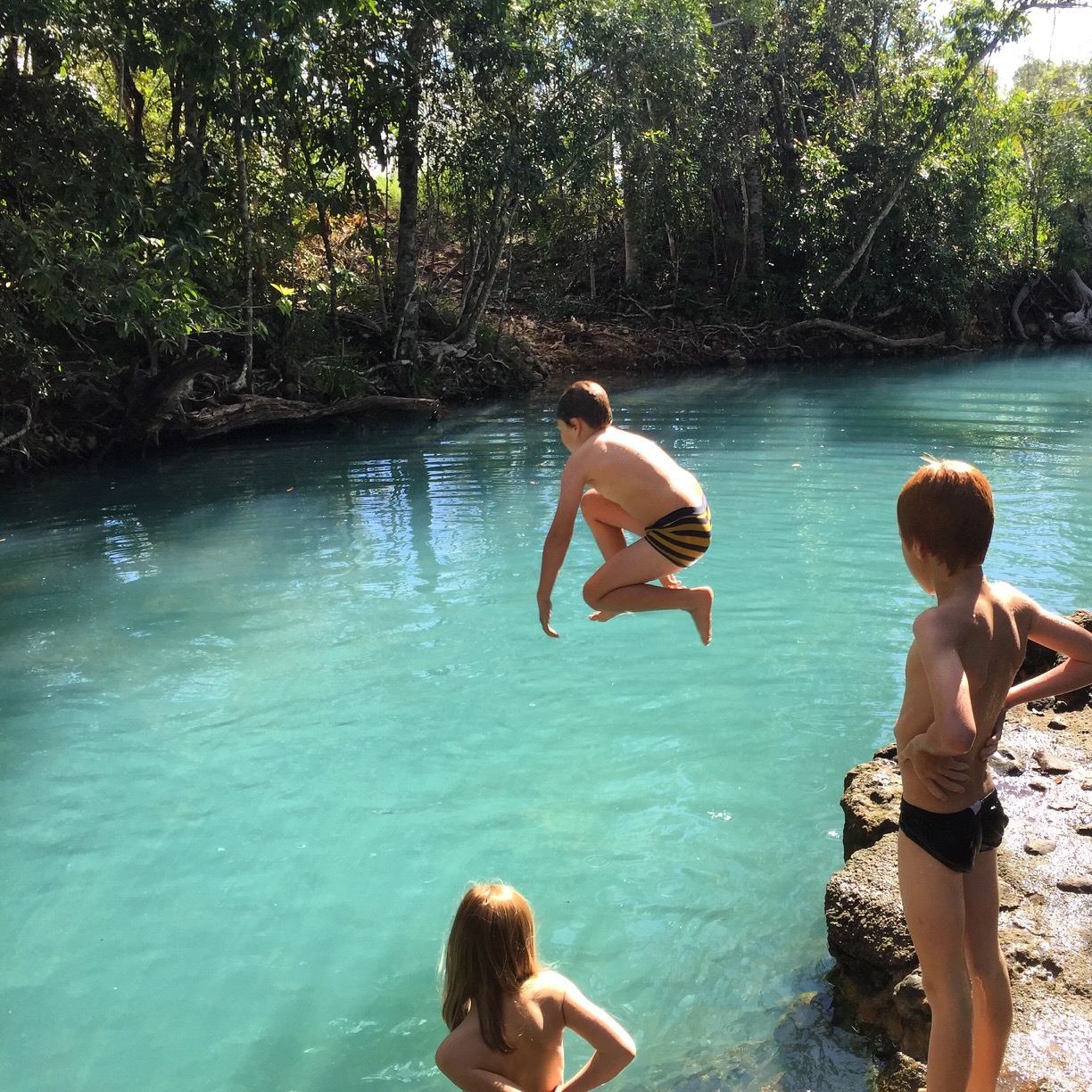 We did indeed find the Cardwell Spa Pool and it is just as spectacular as my google searches had showed! The water is such a beautiful, clear, blue colour. The mozzies were fierce when we were there though – highly recommend the insect repellant. Matt and the kids all had a swim and the best bit was that being a Friday, we had the whole place to ourselves. It is not a very big swimming spot so would be crowded with a few people there.